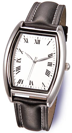 Eine unserer Uhren in klassischer und trotzdem zeitgemäßer Anmutung. Armband aus Lederimitat, Metall-Gehäuse mit glänzender Oberfläche. Zifferblatt natürlich auch in Schwarz erhältlich oder gegen geringen Aufpreis mit einer individuellen Gestaltung nach Kunden-Vorgabe. Zwar harmoniert die Minuterie aus römischen Zahlen wunderbar mit der Gehäuse-Form, aber der Index ist auch in einer Version mit verspielten arabischen Zahlen lieferbar. Lieferung erfolgt inklusive Geschenkverpackung.