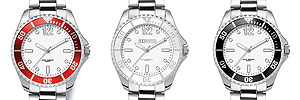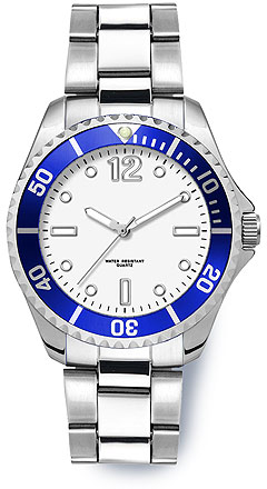 Wunderbar wandelbare Armband-Uhren in glänzendem Metall-Gehäuse mit drehbarer Lunette. Hier sehen Sie vier Beispiele, wie die Uhren farblich gestaltet werden können. Kombinieren Sie einfach nach Ihrem persönlichen Geschmack. Der Drehring ist zusätzlich auch in Orange, Grün, und Gelb erhältlich. Als Geschenk-Verpackung für diese Werbeartikel liefern wir eine runde Metall-Dose.