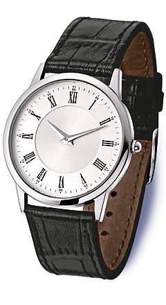 Wie bei allen unseren Armbanduhren mit Werbeanbringung gilt natürlich auch für dieses Modell: Die Positionierung Ihrer Werbebotschaft auf dem Zifferblatt ist frei wählbar. Eleganz und eine solide Ausstattung sind die Haupt-Merkmale dieser Armbanduhr mit ihrem flachen und 3 bar wasserdichten Gehäuse. Das Echtleder-Armband mit Kroko-Prägung ist auch in Braun lieferbar und unterstreicht die klassische Anmutung.