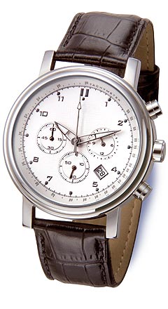 Diese edlen Chronographen mit Edelstahlgehäuse sind 5 bar wasserdicht und ausgestattet mit solidem Leder-Armband sowie kratzfestem Mineralglas. Lieferung inklusive Geschenkverpackung.