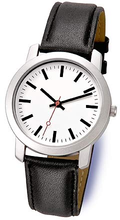 Das Zifferblatt-Design mit den blockigen Stunden-Indizes ist´s eigentlich, was die typische Erscheinung von Bahnhofsuhren ausmacht. Betrachten Sie dieses Modell deshalb bitte auch nur stellvertretend für andere aus unserer Kollektion, die wir ebenso ausstatten können. Diese Uhren sind nicht nur die idealen Geschenke für Eisenbahn-Freunde, denn wir liefern sie auch mit anderem Zifferblatt-Design ganz nach Wunsch also auch mit klassischem Zahlen-Index. Metall-Gehäuse mattiert, Echtleder-Armband. Inklusive Einzel-Verpackung aus Karton.